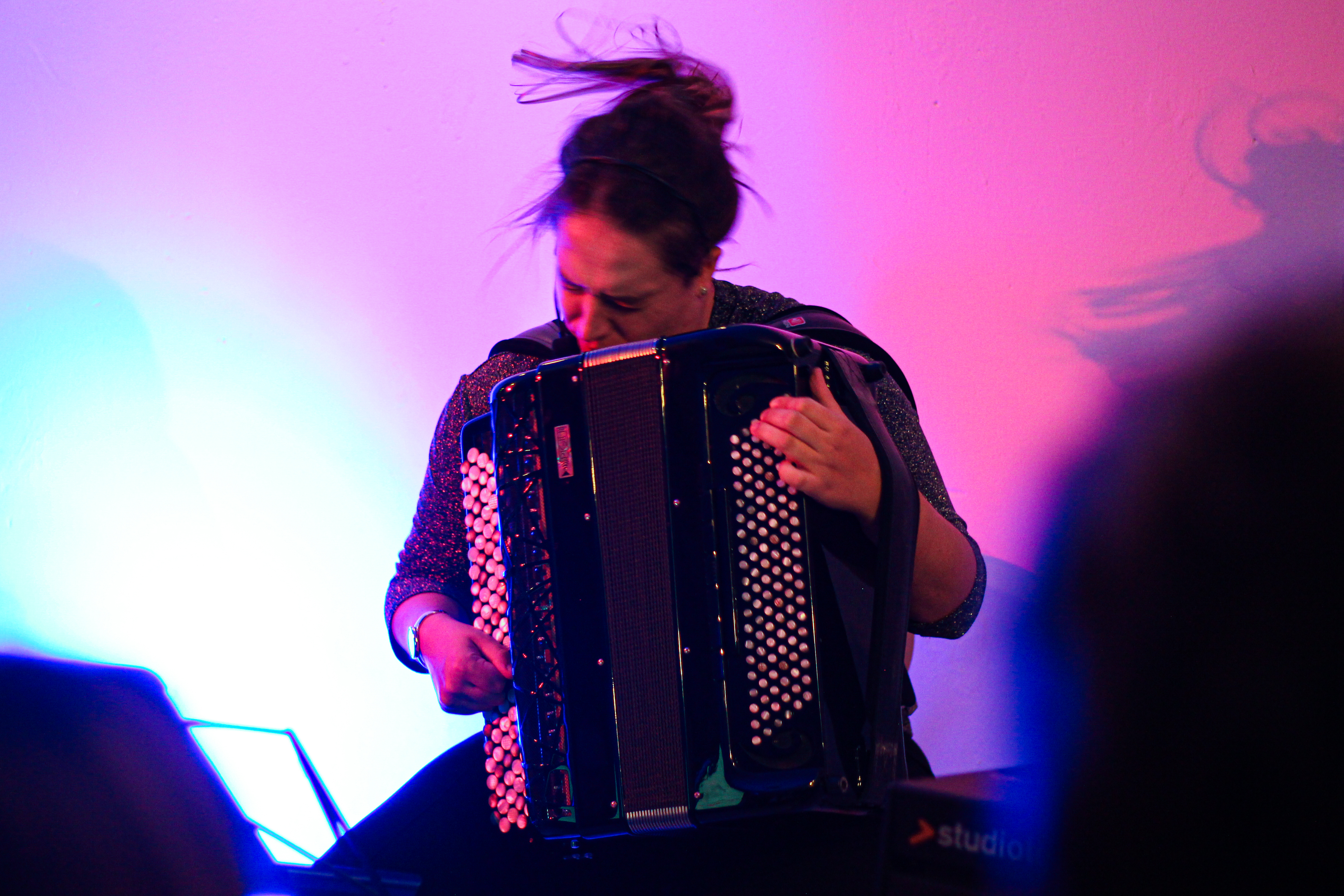 K!art is an experimental music ensemble and creative platform based in Copenhagen. The group has been presenting DIY intermedia music events since 2019. For this concert, the band consisted of Mikkel Schou on pedal steel guitar and electronics, Rob Durnin on piano and keyboard, and internationally recognized accordionist Manca Dornik.