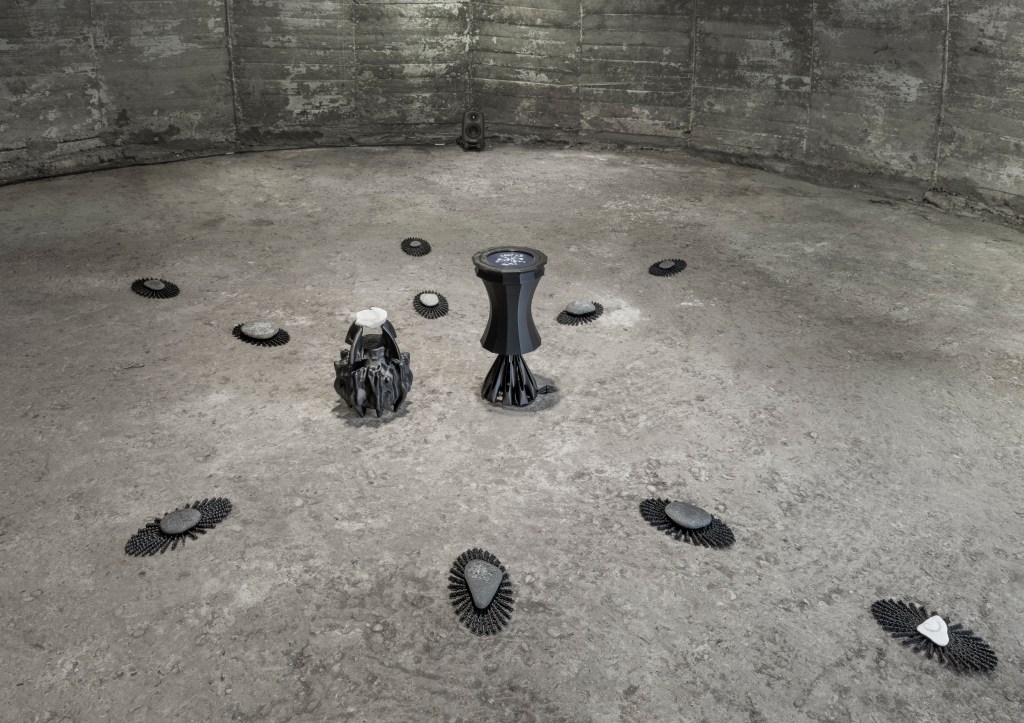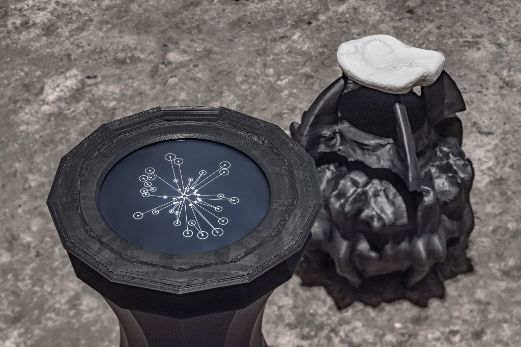 Polylithic is an interdisciplinary AI-music agent sculpture that explores the profound human drive for tool-making and its implications for world-building. This artistic-research project merges music, artificial intelligence, and sculpture, probing our relationship with technology and delving into how early forms of knowledge production, through language and symbols, have shaped humanity. By creating encoded poetry with custom AI scripts, which are then transformed into glyphs and laser-etched onto lithic structures, Polylithic bridges ancient and contemporary practices of encoding and decoding information. The use of stone and 3D printing as materials underscores the project’s emphasis on permanence and geological timescales, surpassing human temporal limits.