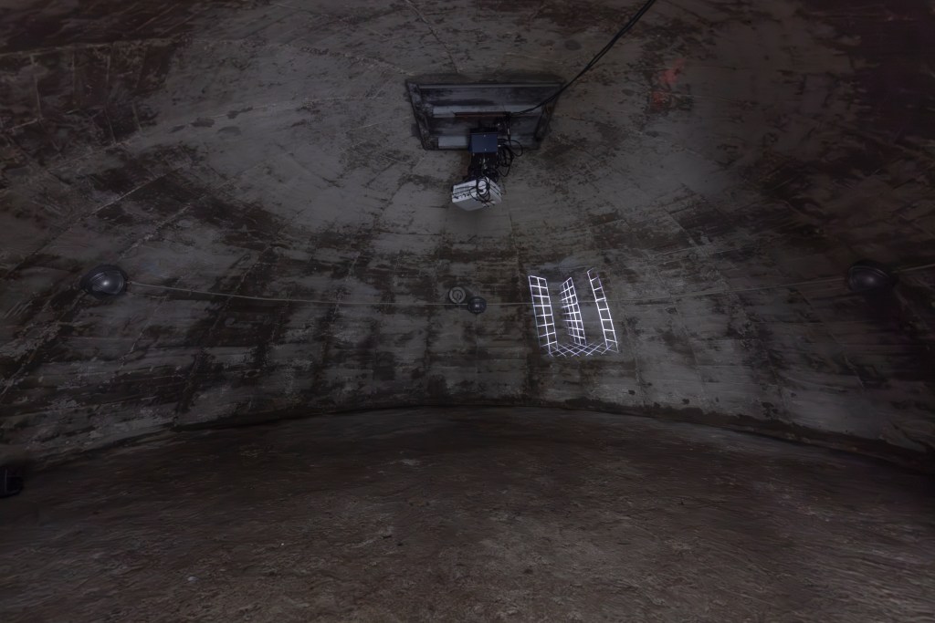 On Perspective is an audiovisual installation featuring a rotating video projector, designed specifically for the unique globe-shaped architecture of platform BUNKER. The installation is a contemporary interpretation of a panorama painting; the 19th-century proto-cinematic precursor to modern day entertainment technologies such as virtual reality, IMAX, and immersive installations. All of these entertainment systems rely on semi-naturalistic 360-degree reproductions of the physical world, and therefore employ principles from perspective drawing. This technique originated in the Renaissance with a desire to represent the world as accurately and naturally as possible. Today, perspective drawing is a fundamental premise for how we depict the world around us. On Perspective investigates the relationship between our perception of the world and our experience of it.